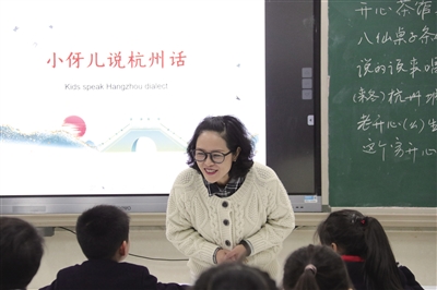 3月16日,陈菁茵在杭州市滨和小学上方言课。本版图片/受访者供图