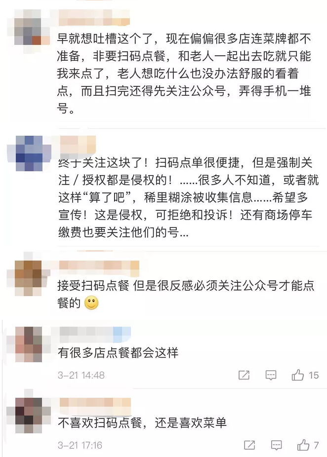 仅提供“扫码点餐”涉嫌过度收集消费者个人信息
