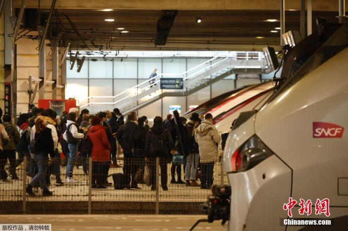 当地时间3月19日,法国巴黎,大量巴黎民众聚集在蒙帕纳斯火车站准备离开首都。