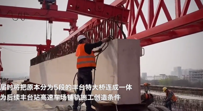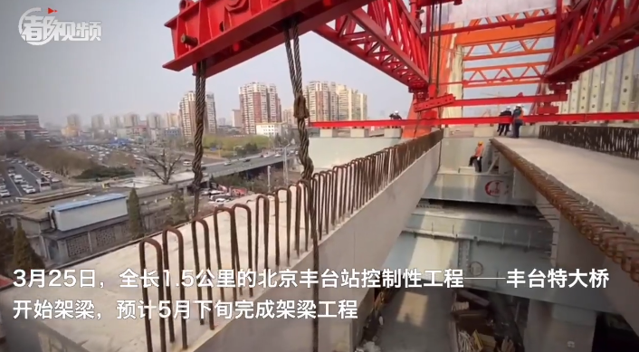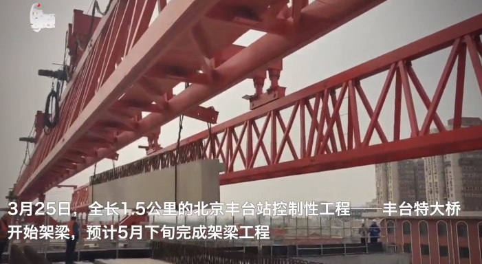 3月25日,全长1.5公里的北京丰台站控制性工程——丰台特大桥开始架梁,预计5月下旬完成架梁工程,届时将把原本分为5段的丰台特大桥连成一体,为后续丰台站高速车场铺轨施工创造条件,为丰台站年底开通奠定基础。