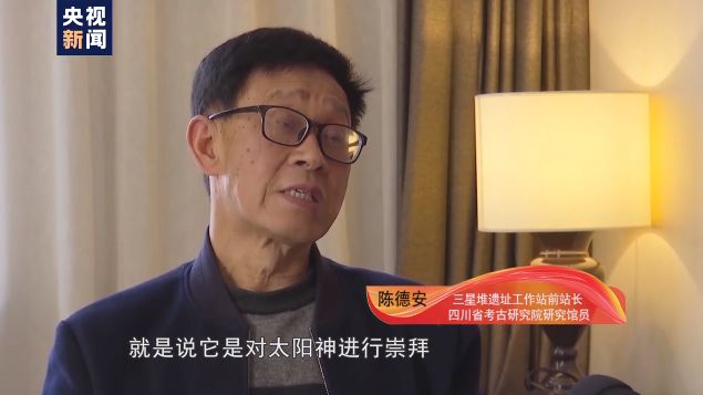 三星堆遗址工作站前站长、四川省考古研究院研究馆员 陈德安:就是说它是对太阳神进行崇拜,我们说太阳神崇拜。
