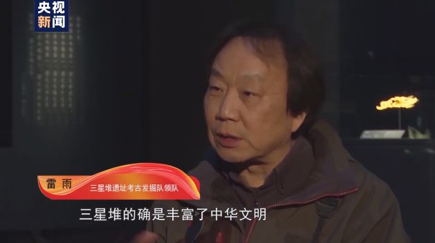 三星堆遗址考古发掘队领队 雷雨:起码从现象上来说,看是有一些,比如说青铜器的那些神树啊,树的造型啊,这个的的确确不是我们中华大地上当时的一种传统。审美的理念,艺术的创造力或者夸张力,这种艺术的想象力,在这方面中原是赶不上三星堆的,从这些角度来理解三星堆的确是丰富了中华文明。
