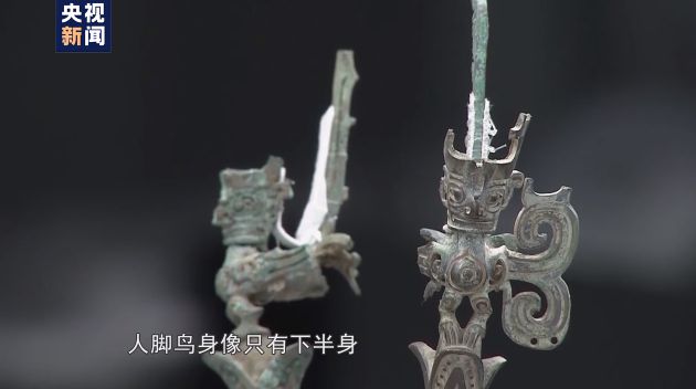 四川广汉三星堆博物馆陈列保管部部长 余健:“人脚鸟身像”只有下半身,上半身没有,所以这个东西就是有些残缺的部件说不定真的会在这几个坑里找得到。