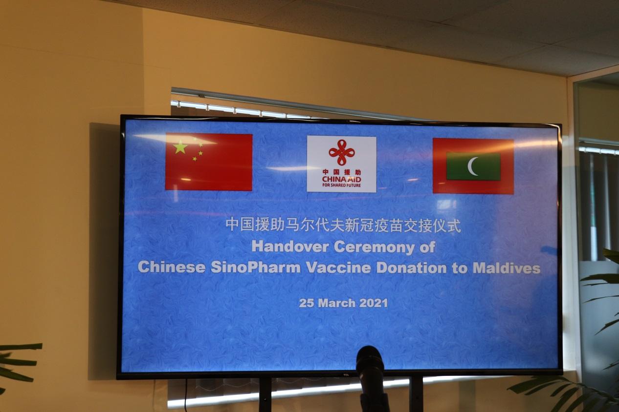 当地时间3月25日,中国政府援助马尔代夫新冠疫苗交接仪式在马尔代夫外交部举行。中国驻马尔代夫大使张利忠、马外交部长沙希德、卫生部长纳西姆等出席仪式。