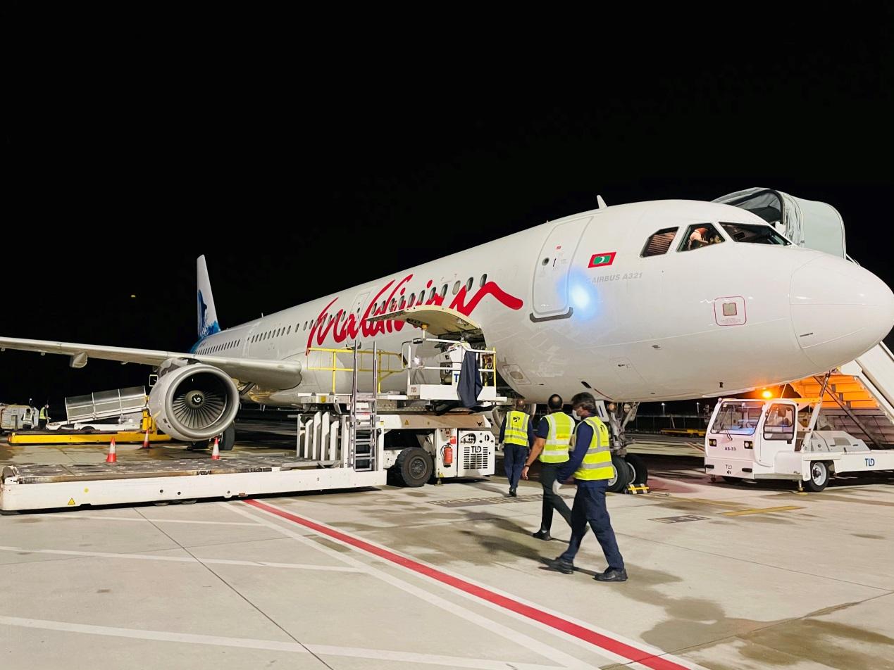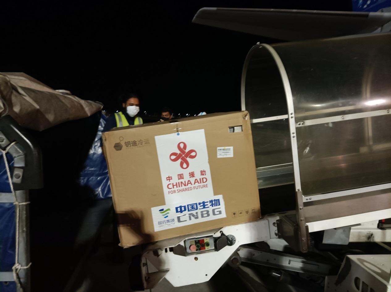 △当地时间3月24日晚中国援助马尔代夫第一批国药新冠疫苗抵达马尔代夫维拉纳国际机场