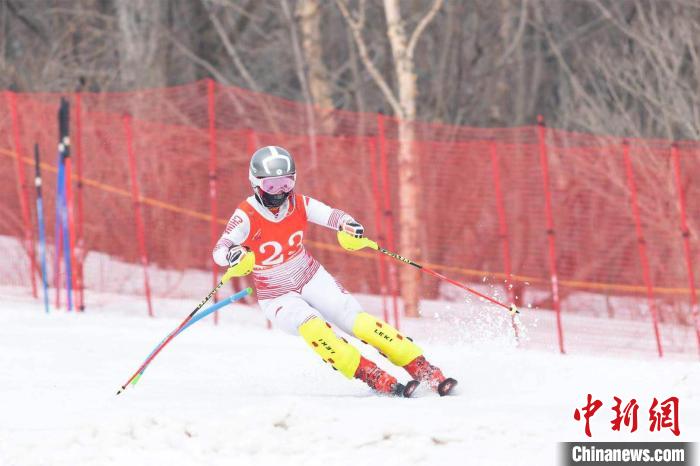 3月26日,2020-2021赛季中国高山滑雪锦标赛在黑龙江亚布力体育训练基地开赛。黑龙江省体育局供图