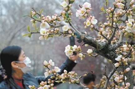 温婉典雅的海棠,一般要等到清明时节才能绽放。公园相关负责人介绍,为让市民游客提前欣赏到海棠风姿,公园对海棠进行了促培。“在每年300余株木瓜属海棠的基础上,今年公园额外促培西府海棠、垂丝海棠近200株,让海棠提前一至两周与游客见面,从而丰富游客的春日赏花体验。”