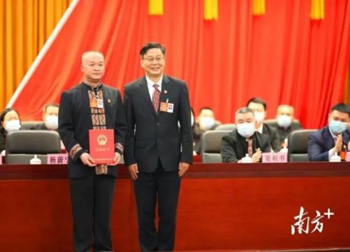 连山县委书记杨蔚宁为黄常雄颁发当选证书。