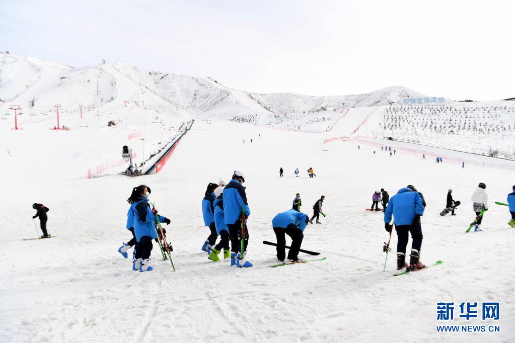 3月25日,滑雪爱好者在新疆阿勒泰市将军山滑雪场滑雪。