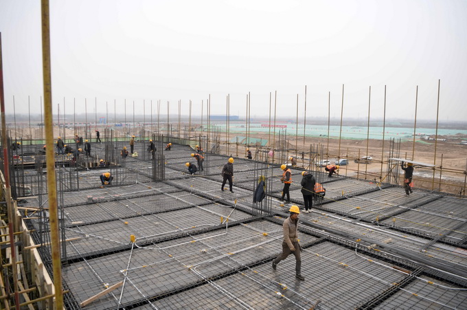人勤春来早,距离大兴国际机场直线距离不到10公里的廊坊临空服务中心建设现场,1300多名工人正全力以赴、加班加点地忙碌着,一派热火朝天的建设景象。