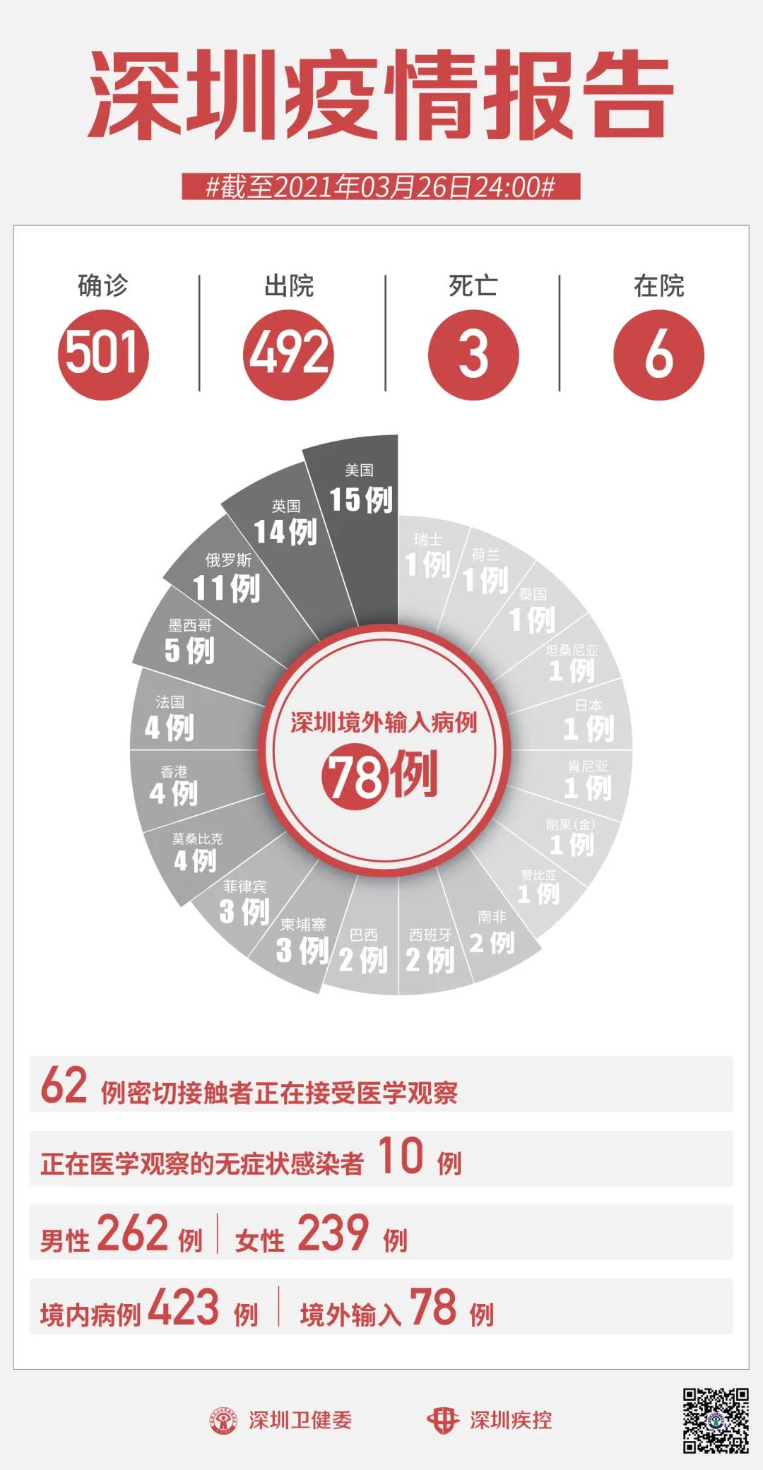 3月26日0-24时,深圳新增1例境外输入无症状感染者。