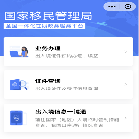升级改造出入境政务服务平台,增加亲友代办等适合老年人网上办事功能,优化操作界面,增设大字体、大按钮页面展示,实现简易化、差别化的定制式操作流程,方便老年人享受更多网上便捷服务。