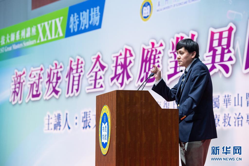 3月26日,上海市新冠肺炎医疗救治专家组组长、复旦大学附属华山医院感染科主任张文宏在澳门分享抗击新冠肺炎疫情的经验和体会。新华社记者 张金加 摄