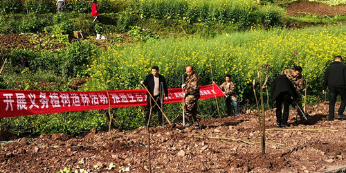 华龙网-新重庆客户端3月28日6时30分讯(通讯员 邓帮华)“大家把窝子打大一点,树苗要扶正,最后还要把水浇透哈。”三月植树节已过,但重庆市武隆区庙垭乡植树的活动还在进行。近日,庙垭乡组织了政府、农业服务中心、畜牧兽医站的成员及部分村干部,在鸭江镇到庙垭乡新改扩建的公路沿线,开展了 “义务植树造林公益活动”。