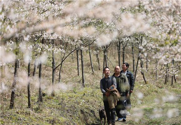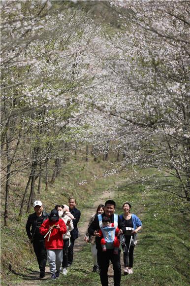 游客漫步樱花林。特约通讯员 廖唯 摄
