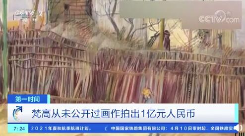 【梵高134年前未公开画作1亿元卖出】3月25日,荷兰印象派画家梵高的罕见画作《蒙马特尔街景》在法国巴黎苏富比拍卖行的拍卖中以1309.1万欧元,约合1亿元人民币成交。据法新社报道,这幅画自完成后就没有公开展出过,由一个家族收藏了100多年,是为数不多私人收藏的梵高作品之一。《蒙马特尔街景》创作于1887年,描绘的是一对男女在木栅栏前散步,小孩在木栅栏前玩耍,当时巴黎蒙马特尔地区较常见的风车也出现在画中。