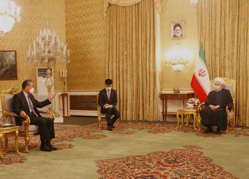 3月27日,伊朗总统鲁哈尼在德黑兰会见王毅
