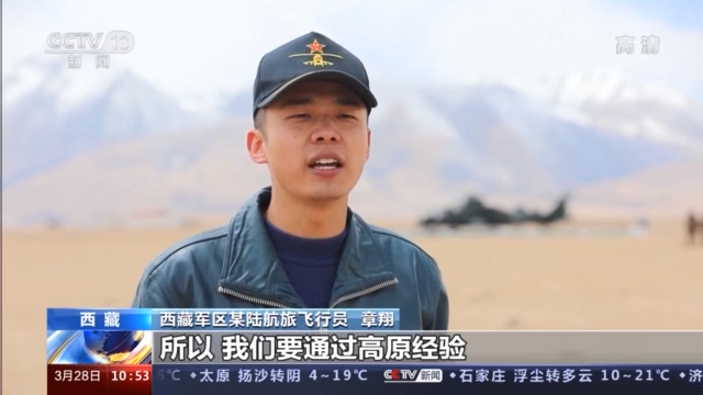 西藏军区某陆航旅飞行员 章翔:高原环境对于击发出的导弹、火箭弹、航炮、航道、轨迹来说也有所影响。所以,我们要通过高原经验在击发的时候,选择较为合适的击发点来使我们的目标与我们的导弹达到一致的轨迹。
