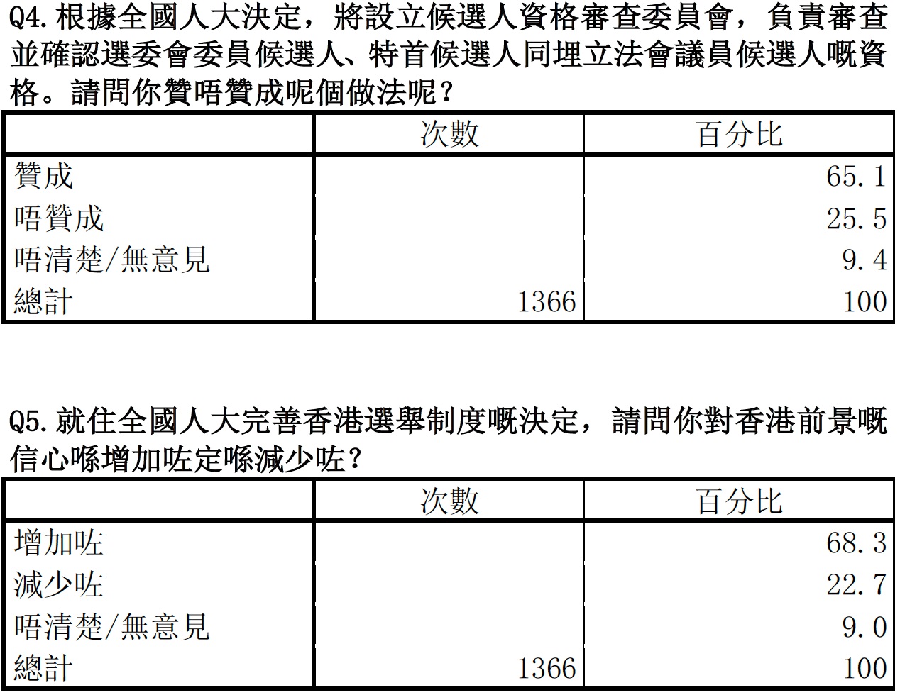 调查显示,68.3%受访者表示因为全国人大完善香港选举制度的决定而增强了对香港前景的信心。结果清晰表明,香港主流民意相信,完善香港选举制度,将有助香港更好发挥「一国两制」独特优势,全面提升香港整体竞争力,为市民带来更多福祉。
