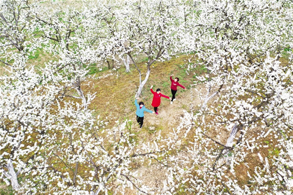 游客在小南海镇大路坝社区踏青赏花。通讯员 杨敏 摄