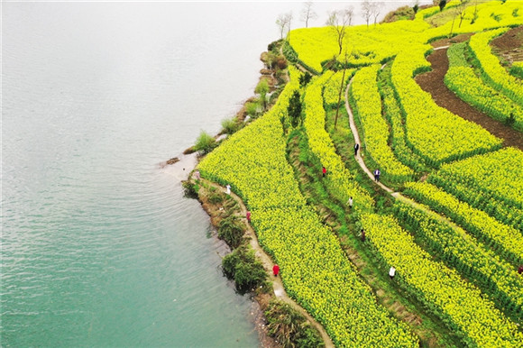 在百里阿蓬江两岸,油菜花形成长长的花带,随河水蜿蜒;黑溪镇苏维村300多亩桃花像红霞镶嵌在山间;中塘镇1万多亩脆红李花,像春雪一样飘落在田野,如童话世界;位于仰头山的市级现代农业产业园,长约2公里的红石楠产业路,宛如彩霞般穿越猕猴桃基地……漫山的李花、桃花,遍地的油菜花、梨花,与群山、村庄、民居、田园、公路、河流相间,勾勒出一幅山间春景图,吸引了众多游客前往赏花、踏青,感受春的讯息,享受春的美丽。