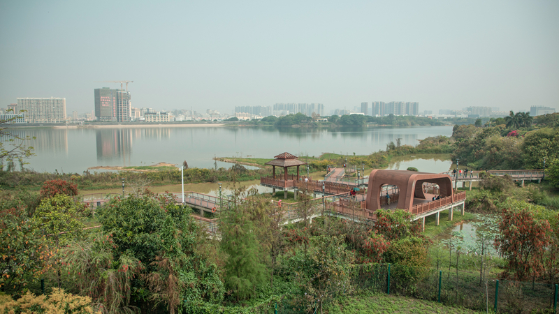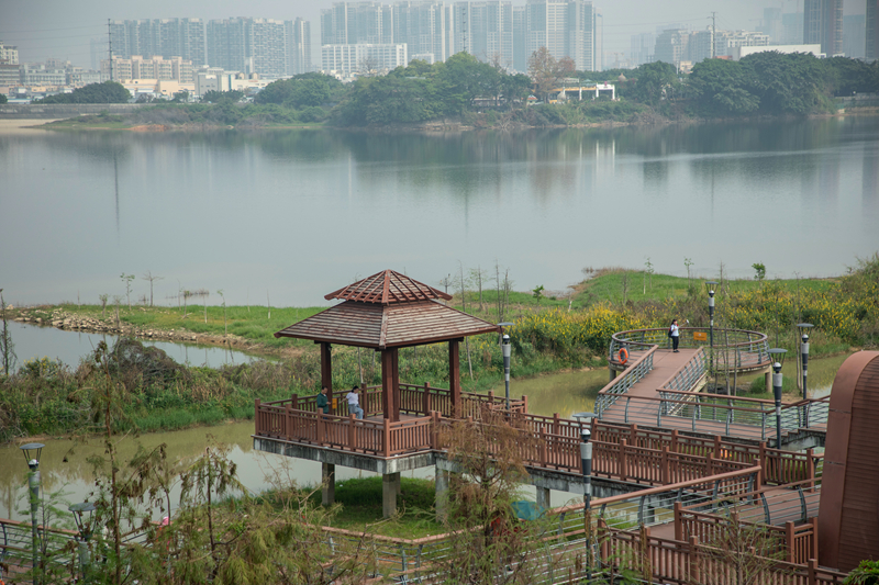 作为“宝安八景”之一的立新湖公园,还有个深圳“小西湖”的美称。公园建设充分利用滨水地形空间,建成环湖绿道约8.8公里。沿线因地制宜设置了林中栈道、景观平台、沿湖步道、户外广场等景观点,是集自然保护、生态观光、科普教育、休闲娱乐、文化体验为一体的综合性生态滨水景观区,是宝安区西部滨海地区的城市新亮点。