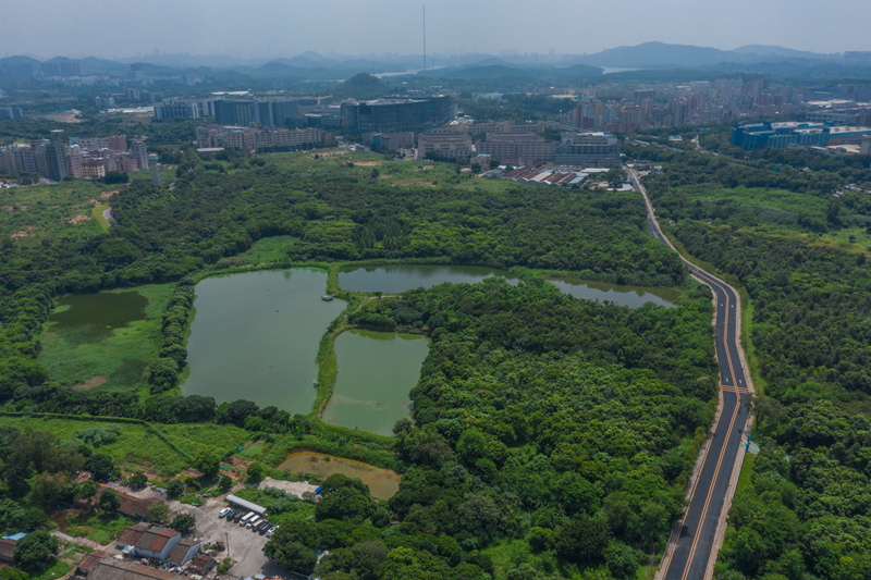 天然形成的水库风光,沿着新修建的盘山道,放眼望去处处皆是郁郁葱葱的山林。路边的鲜花在春风中摇曳,大小的水塘如明珠般点缀在群山间......宝安罗田森林公园位于燕罗街道北部罗田林场内,地处深圳市与东莞市交界处,总面积436.07公顷,总体定位为生态保护与郊野体验的城郊森林公园。是以生态森林风景资源为基底,以“山、水、野趣”为特色,集徒步登山、游览观光、科普教育功能于一体,具有简约质朴格调的郊野公园。正值春日,市民最是能够在登山之中感受万林苍郁,郊野情趣。