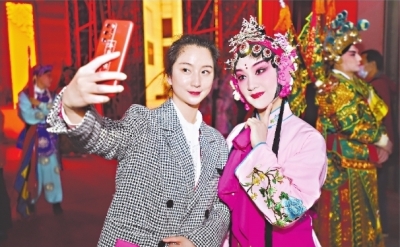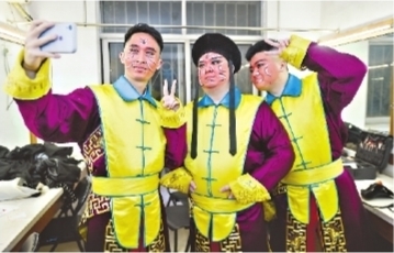 福建省龙岩市汉剧传习中心演员演出前在后台自拍。