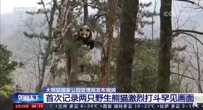 28日,大熊猫国家公园管理局发布一段野生熊猫聚群争夺交配权的珍贵视频。视频中,两只野生大熊猫为争夺配偶,激烈打斗。3月以来,三官庙管护站巡护人员已目击4场熊猫“比武招亲”。
