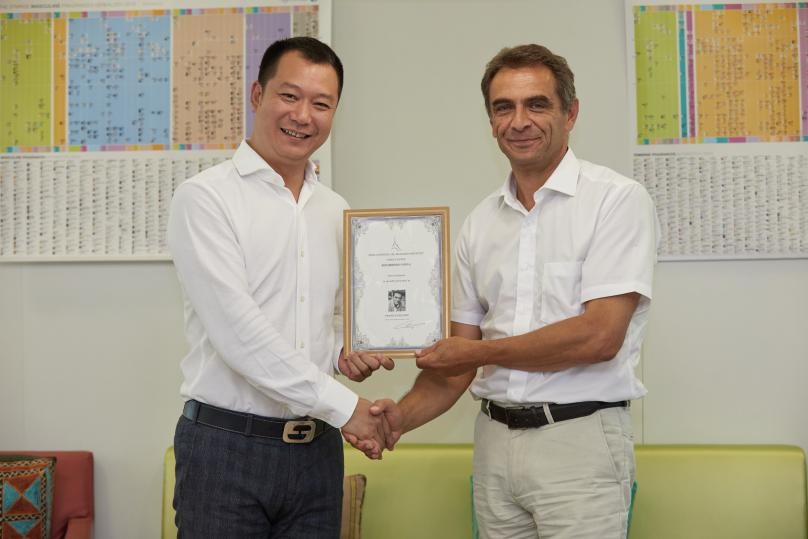 拉芳集团副总裁曹海磊先生与法国著名调香大师Pierre Kurzenne先生合影