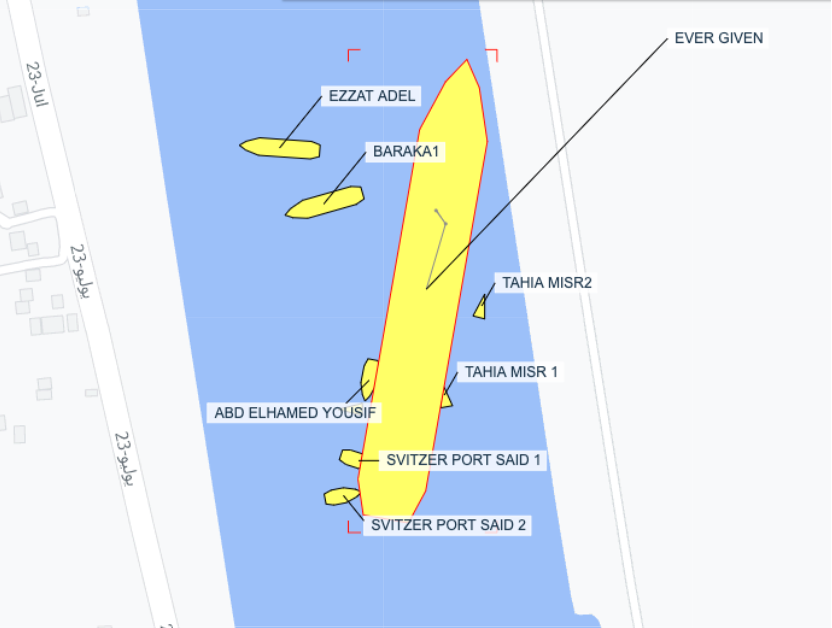 跟踪船舶动态、货物跟踪的船讯网地图显示,塞苏伊士运河的货轮“长赐号”位置有所摆正,此前完全堵塞苏伊士运河两岸。