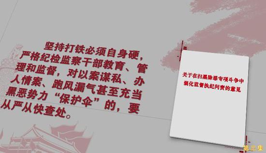 昨晚(3月28日),大型政论专题片《扫黑除恶——为了国泰民安》第三集《打伞破网》在中央广播电视总台央视综合频道播出。片中讲述了陕西咸阳张宏福涉黑案立而不办、久拖不决,背后“看不见的手”竟然是咸阳市纪委监委的一把手权王军“收钱护黑”的案件。