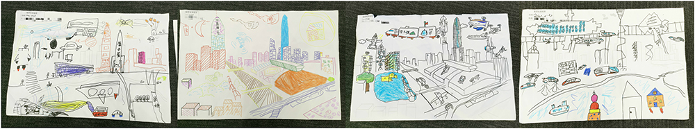 随后,在“畅想未来城市”环节,大家拿起画笔,在各自的城市蓝图上进行未来城市的设想与规划。未来有驾着“风火轮”可以上天的房子,有建在海底能与陆地连接的校园,还有穿越高楼大厦在空中运行的飞船,一位喜欢吃冰淇淋的学员还创建了“共享冰淇淋”机,它自带保温系统,伫立在城市的各个角落,让人们可以随时随地吃到美味的雪糕……智慧与创意在学员们的笔触中碰撞出的五颜六色的光彩。