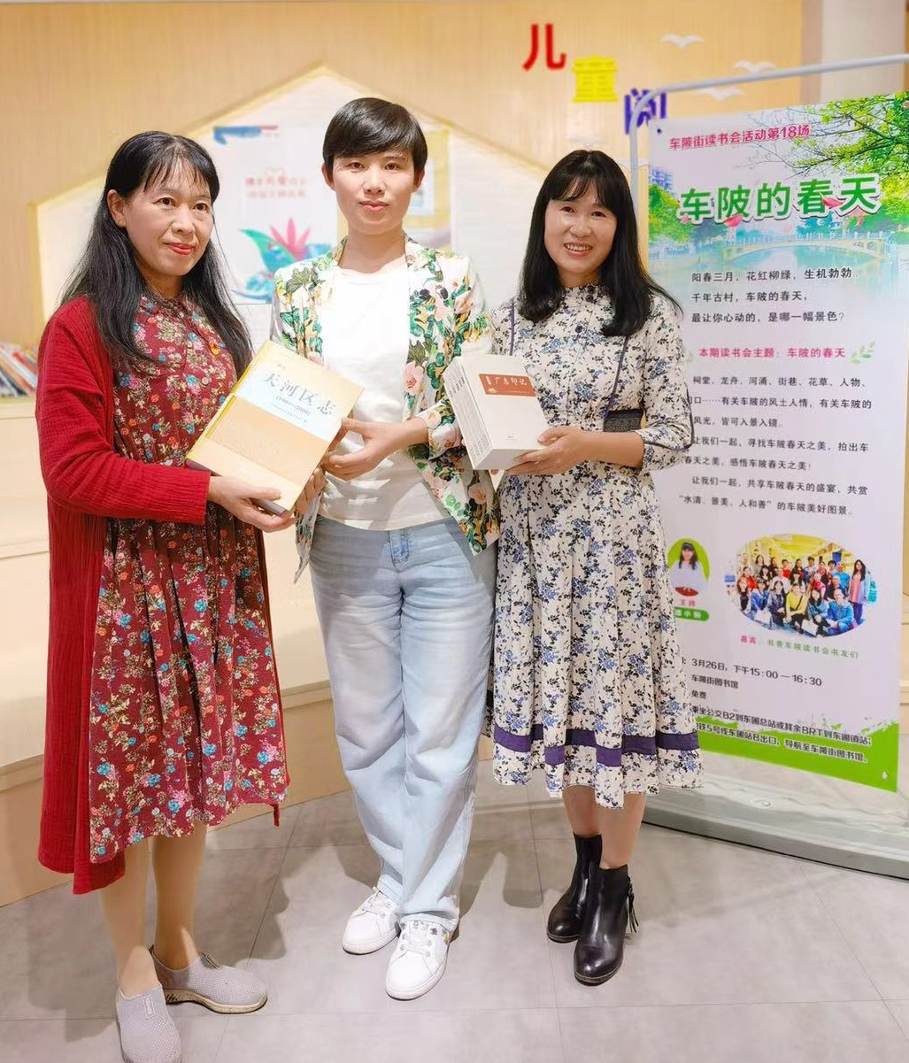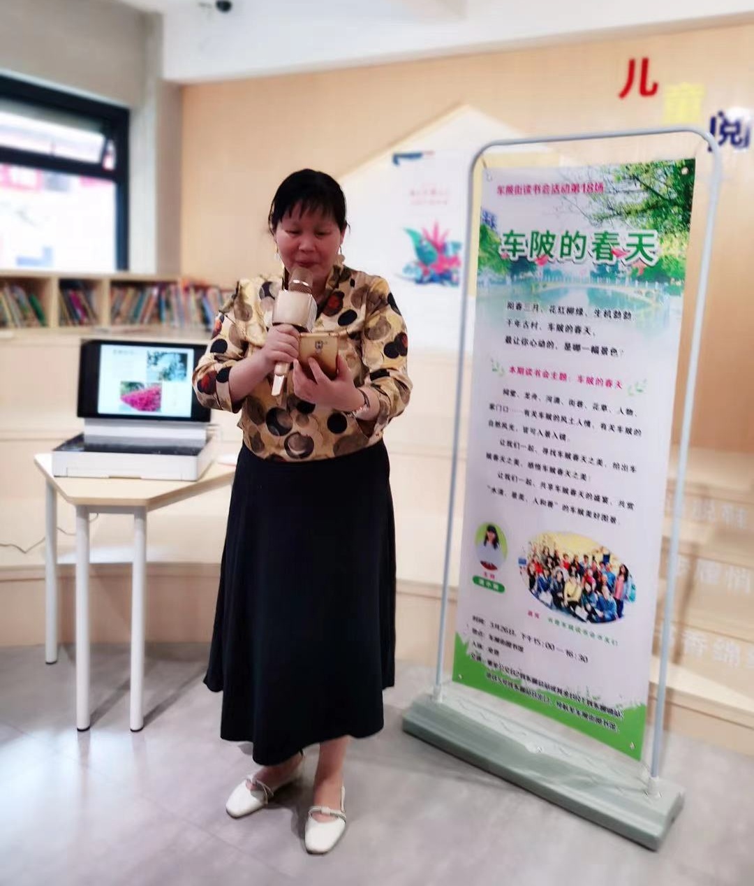 老人说,她叫何倩萍,她经常到车陂图书馆看书。读书会举办前两天,她在车陂图书馆看到了“车陂街读书会第18场活动车陂的春天”海报,心里就想着要参加这场读书会。她觉得举办读书会很有意义,让居民们有了更好地感受知识和提炼境界的文化平台。