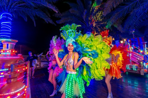 除了舌尖上的享受,潮玩也闪光。海昌不夜城逛吃潮玩越夜越精彩!各种游乐设施为你的三亚之旅增添无穷乐趣。多次登上综艺和电视剧的网红打卡点——三亚之眼摩天轮,适合亲子家庭打卡的海昌冒险岛,比肩迪士尼《飞跃地平线》特效的飞行影院——丝绸之路,充满童真笑声的海豹海狮动物互动——欢乐剧场,还有海盗船、旋转木马等众多游乐项目让你笑了又笑,全新重磅升级的夜光花车巡游绝对称得上是不夜城夜晚最亮丽的风景线,跟着音乐的节奏感受环球风情夜光大秀,饱览夜色绚烂美景。