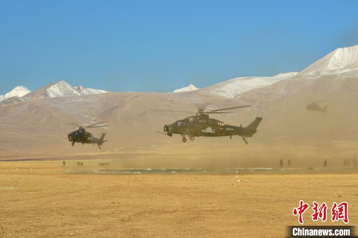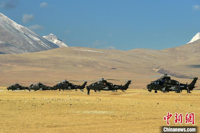 中新网拉萨3月29日电 (蒲津 李磊 吴国龙)近日,在海拔4000多米的西藏某综合训练场,西藏军区某陆航旅在新型武装直升机列装之后,首次进行多弹种实弹射击训练,全面检验陆航部队在高原复杂环境下的火力打击能力。