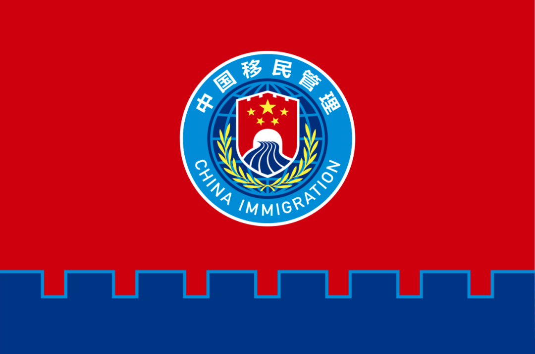 旗面中心置中国移民管理标志,下方为长城图案,象征移民管理队伍依法履行职责,维护国家安全、边境口岸稳定,服务保障经济社会发展的坚定决心、顽强意志和强大力量。