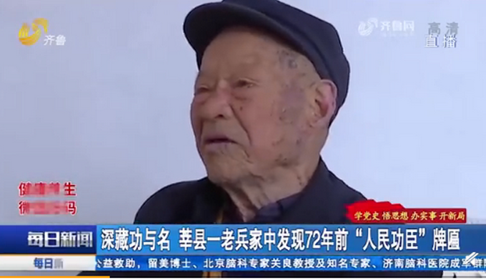 近日,山东聊城莘县一位95岁老兵家中发现72年前人民功臣牌匾。这位老兵叫葛世田,1926年11月出生,1943年9月入伍。因战斗勇敢,1948年12月和1949年4月,两次荣立一等功。1949年,观城县第五区人民政府为他赠送了“人民功臣”牌匾。但他从没有对外人提起过,工作人员发现这块牌匾时,葛世田用它压着自家的粮食缸。为教育后人,发扬革命精神。葛世田将“人民功臣”的牌匾捐赠给了聊城市退役军人荣誉馆。