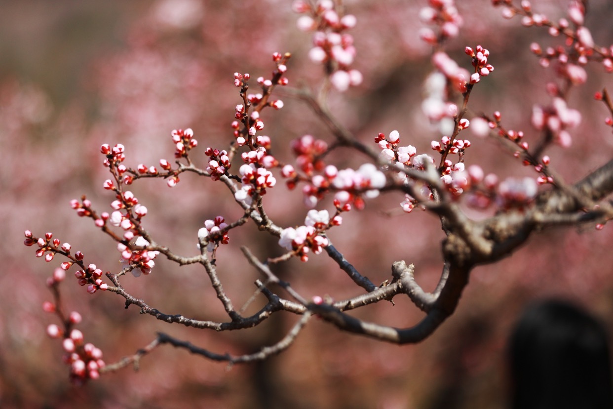 平谷以大桃闻名。不过这时节,桃花尚未开满,杏花倒是开满了山谷。