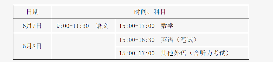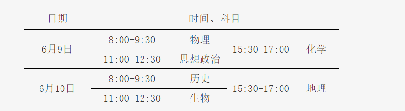 统一高考时间安排在6月7日、8日举行,学考等级考时间安排在6月9日、10日举行。