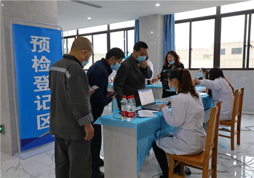 接种现场,接种人员在该院新冠疫苗接种点入口有序排队等候,经过“预检、健康询问和知情告知、登记、候种、接种、留观”六个环节有序开展疫苗接种工作。