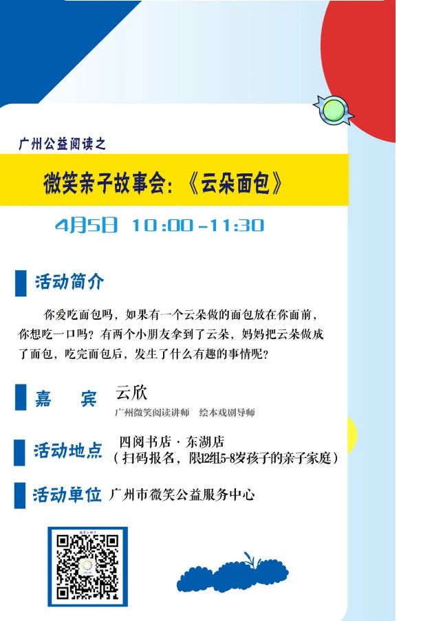 为在互联网瞬息万变的“快阅读”和纸质书籍温润平缓的“慢阅读”之间找到平衡点,打造节奏适中、内容充实的阅读体验,四阅书店·琶洲店、四阅书店·东湖店和吾悦·青年之家文化空间等线下阅读空间将携手打造线下阅读阵地,策划举办公益阅读活动,与读者面对面近距离感悟阅读带来的治愈温馨,如一起在《红唇美猴传奇》中寻宝自然,在《爱的教育》中与听障书友一起点亮生活,在《云朵面包》中品尝亲子阅读的幸福时刻,在《和爸爸一起读书》中找到教育的答案。同时,全省各地市新华书店也将在4月活动期间开展经典诵读、全国城市出版物联展等文化活动等,在全省形成浓郁书香氛围。