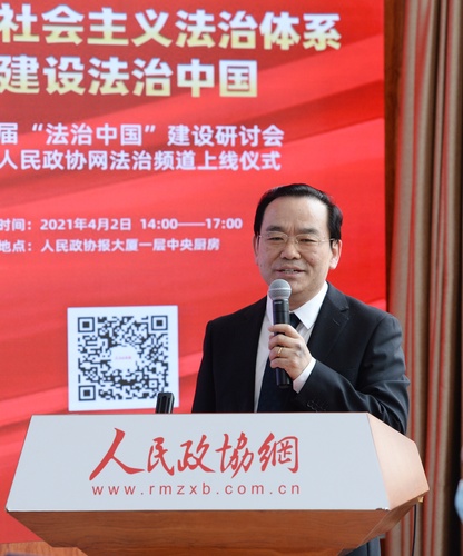 4月2日,由人民政协报、人民政协网主办的“完善社会主义法治体系 建设法治中国”——首届“法治中国”建设研讨会暨人民政协网法治频道上线仪式在北京举行。与会嘉宾围绕用习近平法治思想引领法治中国建设、深化司法体制改革、环境法典编纂问题、中国法治的国际传播等议题展开了深入研讨。