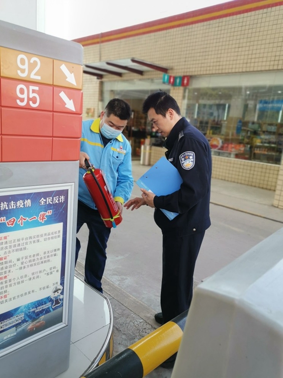 二是认真检查。专管民警对加油站是否落实消防安全制度、消防安全通道是否畅通、消防安全器材是否完好进行了仔细检查,并对加油站定期维护消防设施设备情况进行了复检,督促相关单位及时更新维护灭火器材等消防设备。