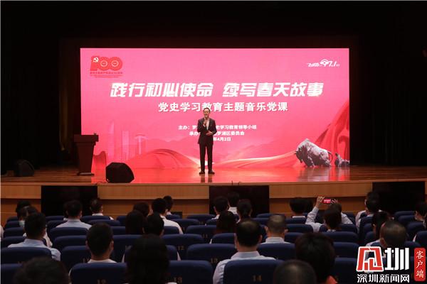 见圳客户端·深圳新闻网4月2日讯(记者 李慧 通讯员 王舒琪)4月1日下午,罗湖青年相聚一堂,共同参加一场别开生面的沉浸式“学党史、强信念、跟党走”党史学习教育主题音乐党课。活动特邀了深圳广电集团广播中心党委委员刘洋用“艺术+党史”的全新形式作主题讲解。罗湖区委书记罗育德,区领导吕漫妮、李志荣、陈龙兴、罗安娜,团市委副书记赖锋等出席了活动。