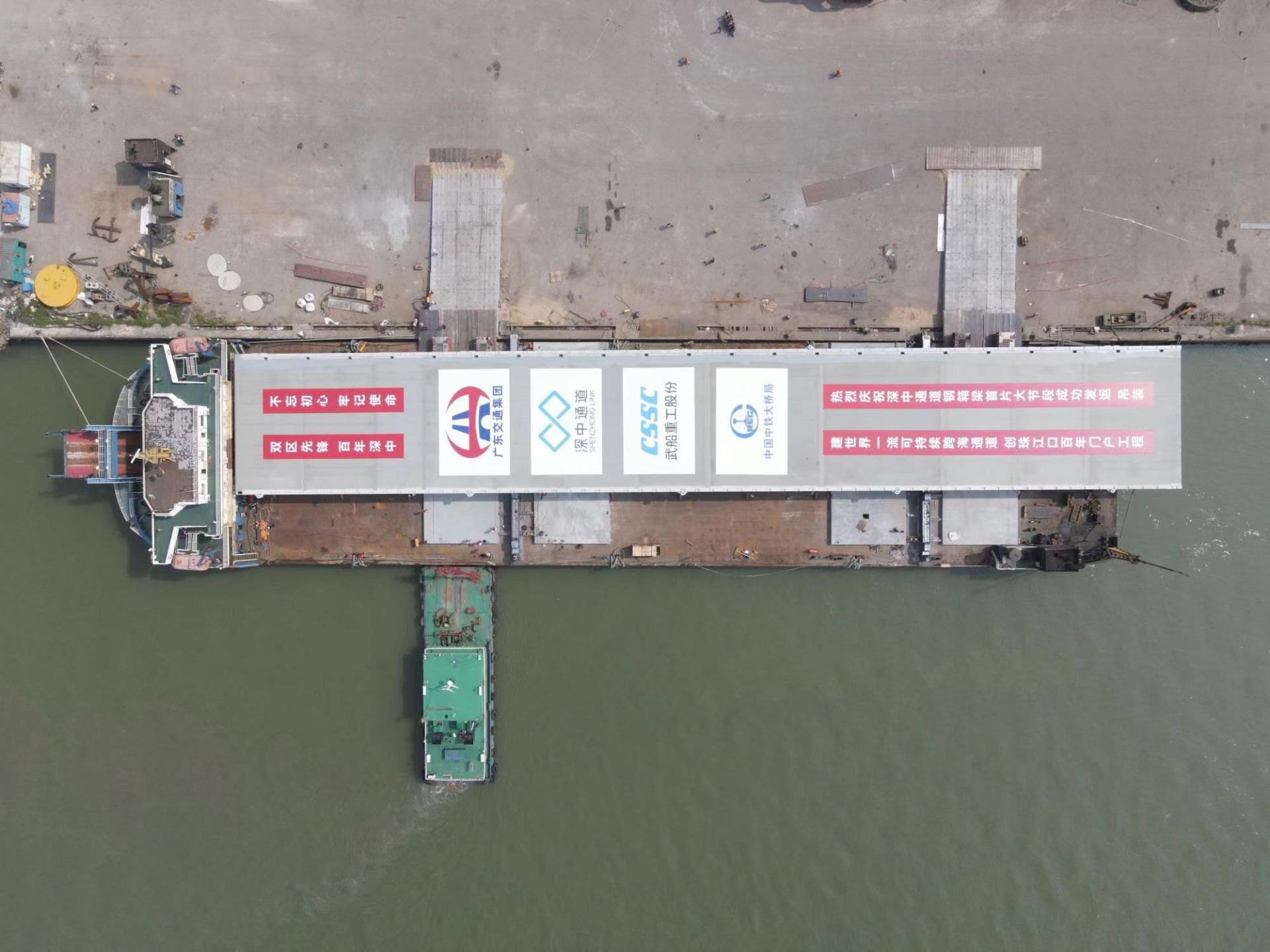 深中通道首片钢箱梁横向滚装上运输船准备出发(摄影:刘春月)