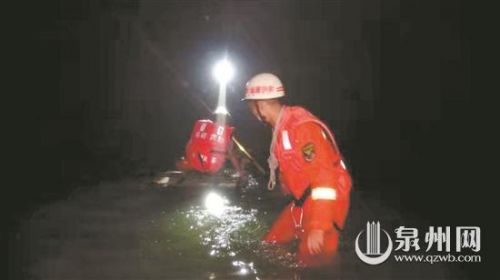 晋江市龙湖消防救援站消防员到达时,正值南风天,海面被大雾笼罩,能见度不足50米。男子被困在距离岸边200多米处的一块礁石上,从岸上望去只能看到微弱的手电灯光。