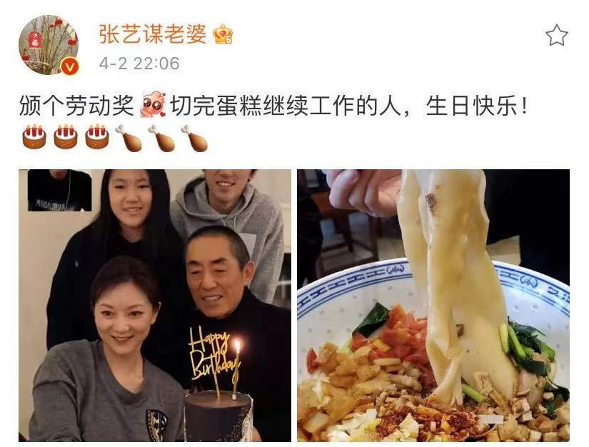 4月2日,恰逢名导张艺谋的71岁大寿,陈婷晒出一家五口合照为其低调庆生。