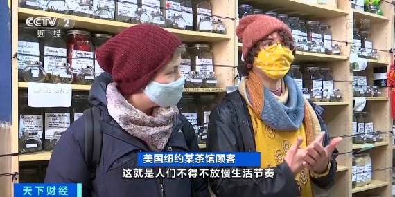 美国纽约某茶馆顾客:疫情还是带来一些好处,这就是人们不得不放慢生活节奏,待在家里花时间做一些事情,比如饮茶。