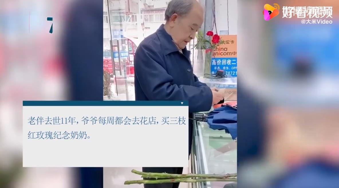 【泪目!老人每周为亡妻买3支玫瑰】安徽合肥一位花店店主记录下一位老人为去世妻子买玫瑰花场景,老人老伴09年去世,如今每个星期,他都会来买玫瑰放在老伴照片前。店主:我花店开了5年,他每次都买3支红玫瑰。